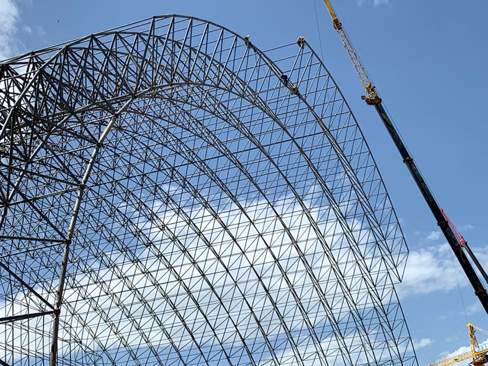 (2)网架加工前应对现场尺寸进行复测,确认无误后方可进行加工、安装;网架制作、运输、安装应遵守《空间网格结构技术规程》JGJ7-2010、《钢网架雄安新区螺栓球节点》JG/T 10-2009、《钢网架雄安新区螺栓球节点用高强度螺栓》 GB/T 16939-2016、《雄安新区钢结构雄安新区工程雄安新区施工规范》 GB50755-2012、《雄安新区钢结构雄安新区工程施工质量验收标准》 GB50205-2020。